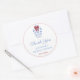 Obrigado por adesivos por qualquer evento (mostrado aqui para um Chá de panela, mas todos os campos de texto são personalizáveis). O design apresenta um boião de gengibre azul-aquarela e branco, decorado com um arco vermelho festivo.