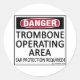 Perigo, Área de Operação Trombone! Proteção auricular Necessária! Isto dá-lhes um aviso justo! Veja todas as nossas designs musicais em copos, canecas, camisetas, camisas, chapéus e outros presentes e roupas.
