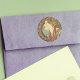 Esta ilustração vintage tem uma senhora elegante cercada por um padrão de azulejo verde-ornamentado e vermelho-escuro com folhas em seu longo cabelo. Veja minha loja Art by MAR para combinar produtos com este design.
