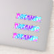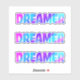 Você é um sonhador de coração, sempre vendo o mundo como ele poderia ser? Então, este colorido adesivo de arte é perfeito para você! A palavra "sonhador" está escrita em tons brilhantes de roxo, rosa e aqua.