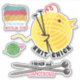 Bola divertida de pintinho de fios ou galinha com agulhas para tricô, mais hastes de fios e outras noções neste adesivo para tricotar seus macacos eletrônicos, andar, bagagem, trabalho e material escolar.
