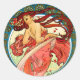 1898 Art Nouveau litograph poster do artista checo Alphonse Mucha (1860-1939). Linda mulher com um vestido vermelho, flores em seu longo, fluente, cabelo vermelho brilhante, arquejada pelas costas, olhando sobre os ombros encarnudos, em pé sobre os dedos dos pés.