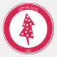Árvores de Natal vermelhas sazonais tortas, com ornamentos redondos de bola branca, formam círculos de dentro vermelho e branco aparados. "Feriados Felizes" e o ano pode ser modificado com seu próprio texto.