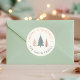Cartaz de Natal redondo com árvores pastéis, tipografia moderna e design de férias festivas em estilo escandinavo minimalista.