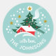 Torne os seus presentes de férias mais especiais este ano com autocolantes personalizados! Este modelo de diversão pode ser personalizado com o nome do destinatário ou o nome da sua família. Um design de estilo vintage com uma ilustração simples inspirada nos cartões de Natal Art Deco de 1930. Apresenta uma árvore festiva com uma acolhedora casa coberta de neve, entre flocos de neve e estrelas. Esta design divertida traz um toque nostálgico com uma reviravolta moderna, e é perfeita para o presente, envelopes, favoritos para festas e muito mais! Disponível com um acabamento mate ou brilhante. Cores impressas: menta, azul-esverdeada, vermelha, verde, branca e dourada.