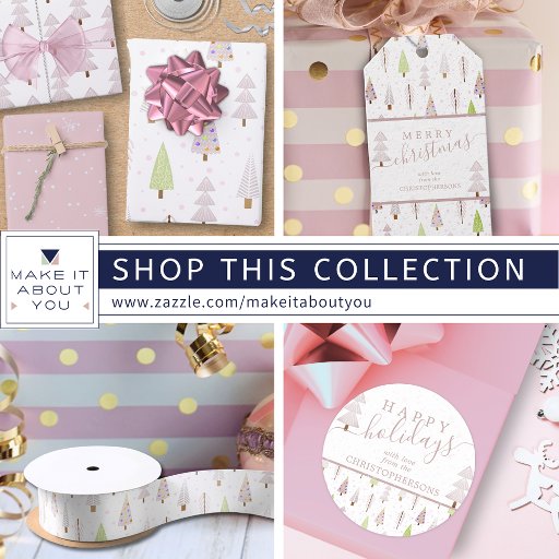 Árvores de natal abstrato modernas e árvores florestais e padrões de neve de inverno em tons de rosa, mauve e limão com a saudação FELIZES e personalizados com seu nome ou texto personalizado. Entre em contato com o designer por meio do Zazzle Chat ou makeitaboutyoustore@gmail.com se você quiser que este design seja modificado, em outro produto ou quiser coordenar itens.