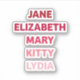 Mostre o seu lado estarrecedor e o amor pelos livros da Jane Austen com este adesivo de livraria com os nomes das irmãs Bennet em diferentes tons de rosa do Orgulho e Preconceito de Jane Austen: Jane, Elizabeth, Mary, Gatinho e Lydia. Excelente para amantes de livros e fãs de Jane Austen. *Observe que a Marca d'água do Zazzle que aparece na visualização de zoom NÃO aparecerá no produto impresso final. © Bookish e Maravilha