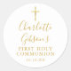Com uma cruz dourada e tipografia de assinatura elegante. Personalize com os detalhes da sua primeira comunhão especial neste adesivo elegante. Criado por Thisisnotme©