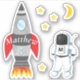 Astronauta Spaceship Rocket com o nome da criança e monograma Lua e Stars Sticker