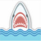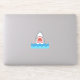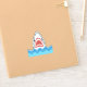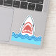 Tubarão branco-excelente engraçado com suas mandíbulas agape salta das ondas prontas para morder. Presente engraçado para nadador, viagem de pesca em águas profundas, mergulhador.