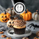 Adesivos preto e branco de festa de solteiro / solteira "até que a morte nos separe". Desenho de noiva e noivo esqueletos é ótimo para um evento de casamento temático de Halloween. Personalize o texto e as cores para o seu evento.