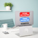 Este adesivo "Ativado por Voz" indica claramente que o dispensador é controlado por comandos de voz, promovendo uma experiência de usuário sem toque e higiênica. O design simples do adesivo e a mensagem clara tornam fácil para os usuários identificar e interagir com o dispensador.