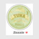 Uma ilustração do estilo pop da tampa de uma lata de atum. Este é desenhado em vetor e tem a aparência de um poster de publicidade retrógrada. Tem atum e é desenhado em tempos de verde e amarelo. Um design para qualquer um que ama peixe enlatado/conservado.