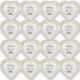 Laser recortado vinil com impressão de pequenos adesivos claros e etiquetas com design de corações em ouro. Crie seus próprios adesivos personalizados de forma personalizados de imagens e texto.