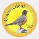 uma imagem de um Robin americano o pássaro estadual de Connecticut com o nome do estado e o nome da ave