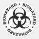 Risco biológico - adesivo branco com inscrição a preto e símbolo de risco biológico.