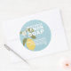 Um adesivo moderno de sabão de limão feito à mão com seu nome e site ou endereço em tipografia simples branca de na moda num fundo azul brilhante com uma ilustração de limão botânico na moda com folhas de limão e flores de limão. Basta adicionar o nome da sua empresa, o nome do produto, ingredientes, peso e o seu site ou endereço à etiqueta. Desenvolvido exclusivamente para você pelo Happy Dolphin Studio!