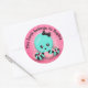 Polvo branco, azul e cor-de-rosa, com listras pretas, arco capilar e corações, num adesivo com nome de livro rosa, brilhante. Personalize com seu próprio texto. Texto, fonte, tamanho da fonte, cor e posicionamento são completamente personalizáveis, então torne-o seu. A aparência dimensional deste adesivo é simulada no trabalho de arte.