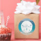 Vinheta de Natal costeira/Vareta de envelope com água azul-oceânica e um grande dólar de areia branca. É impresso um texto curvo no topo e no fundo, para uma saudação e "Feliz ano novo", estilo sombra. Adicione mais texto personalizado ao centro e use como um adesivo de presente.
