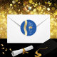 Comemore o seu mais velho de graduação favorito com este design de tom azul e dourado. O modelo apresenta uma visão ondulada do lado esquerdo com a palavra "Formando" no fundo ondulado dourado, acompanhada por um boné de formatura dourado à esquerda e ao ano de aula do formando, nome e escola de branco. Ilustração original e design por Designs Holiday Hearts (direitos reservados) com o crédito de foto marcador para Logan Isbell via Unsplash.