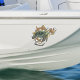 Uma tartaruga marinha verde nadando por uma roda, corda e uma âncora. Tatuagem estilo arte.