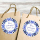 Azulejos azuis de Talavera vintage etiquetas de agradecimento com monograma impresso para chá de panela mexicano, modelo, padrão de azulejo azul mediterrâneo Azulejos Maiolica padrão de azulejos gregos etiquetas personalizadas para chá de panela etiquetas para lembrancinhas