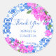 Azulejos Azuis e Bougainvillea elegante Mediterrâneo Grego Santorini Mykonos tema de casamento agradecimento etiquetas de favor.