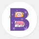 Ilustração de uma menina de desenho animado escalando sobre uma letra gigante B. Imagem disponível em vários presentes e produtos. Adesivos.