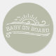 Um tema "baby on conselho" neutro com arte de linhagem branca com sol e ondas. Texto branco. O fundo é verde.