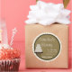Este adesivo apresenta um plano de fundo de bolinhas de folha de ouro e um centro totalmente personalizável. Este adesivo é um design genérico de excelente.