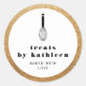 Etiquetas para produtos de padaria, pastelaria, padaria ou similar, com um uísque de balão agudo a preto, com um coração no punho. Adicione o nome da sua empresa em letras negrosas juntamente com um slogan em uma fonte moderna e fina. Os autocolantes redondos têm uma borda de ouro falso.