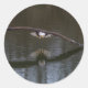 Uma águia careca com ponta de asa pastoreando a superfície de um lago. Foto de Richard Lee.