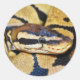 Fotografia de uma píton de bola enrolada na face e na cabeça.