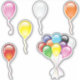 A folha de 6 adesivos apresenta balões individuais rosa, vermelho, amarelo, branco e laranja, e um monte de 10 balões. Esta é uma das duas folhas de balões de 6 adesivos diferentes na loja LDTreasures.