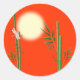 Sol suave brilhando nas costas, feche o bambu com uma libélula delicada sentada sobre ela