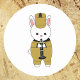 Você gosta de coelhos? Você gosta de adesivos bonitos? Este adesivo tem uma foto de um coelho vestindo um uniforme de banda dourado e preto marchando enquanto toca clarinete.