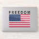 A palavra "LIBERDADE" impressa em branco, acompanhada de um gráfico da bandeira americana, Cor de fundo pode ser alterada.