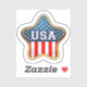 Este adesivo patriótico, com uma bandeira americana em forma de estrela e as iniciais "EUA" no meio, é o presente perfeito para qualquer motorista americano.