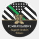 Esta design de aposentadoria possui uma bandeira militar com listras pretas e brancas, e uma fina faixa verde de linha também. As botas do exército do ouro estão acima do nome do sargento aposentado, capitão, soldado, tenente ou general.