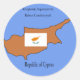 A bandeira e o mapa de Chipre com a República de Chipre impressos em inglês, grego e turco.