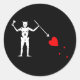 A design da bandeira de Teach incluía um esqueleto corado segurando uma ampulheta (representando o seu tempo de corrida), um punhal com coração e três gotas de sangue (representando sangue seria desenhado se não se rendesse). Este sinalizador é único na medida em que contém uma mensagem para outros navios.