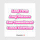 Outra camiseta Barbiecore de JessicaAmber - pergunte sobre pedidos personalizados! Mostre a sua obsessão com o filme de ação ao vivo com este adesivo de vinilo com corte de beijo. Apresenta um slogan em uma fonte rosa-quente e serif branca, com destaque e sombra. O slogan diz a linha icônica de Ken, 'Longo Prazo, Longa Distância, Baixo Compromisso, Namorada Casual'. Você pode personalizar as cores e o texto usando o botão Personalizar. Um presente bonito para o seu namorada amoroso de bonecas. Criado em 15 de agosto de 2023. 🔴 Para designs de texto mais engraçados, consulte a minha loja Zazzle.com/JessicaAmberArtist 🔴 Para pedidos personalizados, envie-me um e-mail para jessicaamberartist+zazzle(at)gmail.com