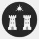 "Sable, duas torres e, em grande parte, uma mullet de três pontos maiores e seis menores, a favor."