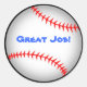Um adesivo de baseball redondo com as palavras "Trabalho de Excelente!" em azul...excelente para professores de volta à escola.