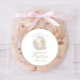 O adesivo liso redondo Dourado, cor-de-rosa, Elegante aquática Baptism Clássico, com uma bela cruz cor-de-água rosa e dourada, rodeada por bonito vegetação e flores.