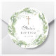 Autocolantes de batismo modernos e personalizáveis, com uma delicada lírio do design floral do vale em torno de uma cruz de impressão de ouro ornamentado, sobre um fundo limpo com uma elegante inscrição.