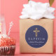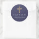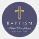 Marinho personalizado Blue Religerian Cross Boy Clássico Baptism Clássico Round Sticker.