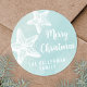 This elegant round Christmas sticker features a modern beach-themed design with white starfish scattered across a teal blue watercolor background. Simple, coastal, and festive, it's perfect for anyone who loves ocean vibes or lives in a tropical spot like Florida, Hawaii, or the Bahamas.