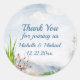 Bonito adesivos para um casamento temático único na praia. Decorre as caixas de favoritos ou as bolsas, edite-as como obrigado, colantes etc. Impresso com uma praia cênica sonhadora e fundo de surf com sotaques botânicos suaves. Texto formatado pronto para ser editado com seus próprios detalhes no editor fácil do Zazzle. Coordena-se com muitos outros itens na nossa coleção de design de Duna de Praia Romance. Criada em parte com uso comercial, com licença de trabalho de arte de comprada pelos Designs de Andjelina.