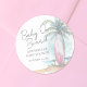 Adesivo Redondo Chamada para Chá de Bebê Boho Beach Surfboard.